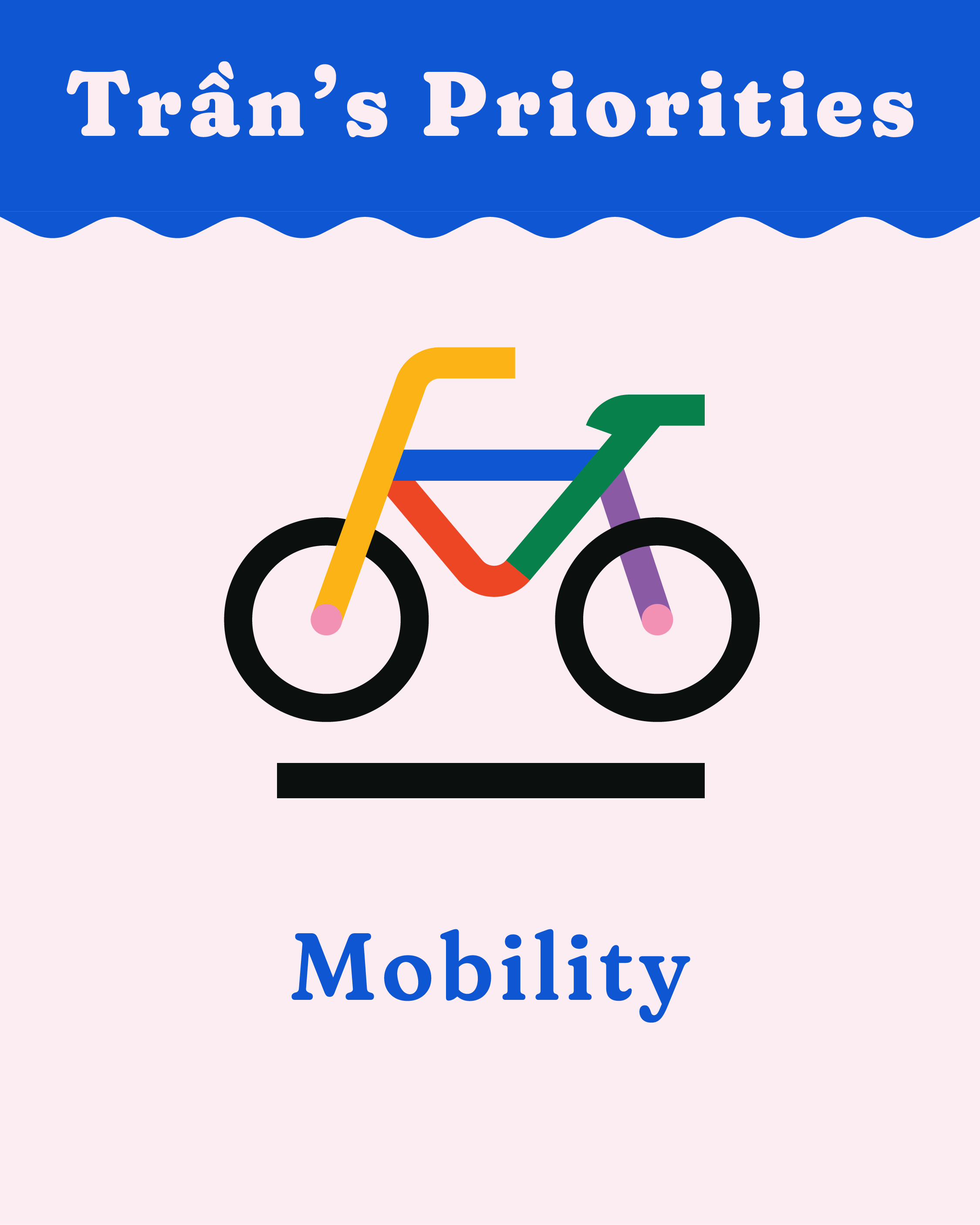 Mobility is more than transportation—it’s freedom. Trần is committed to reimagining how people move through Southwest Denver—whether by foot, bike, bus, or wheelchair—making streets safe, accessible, and sustainable.